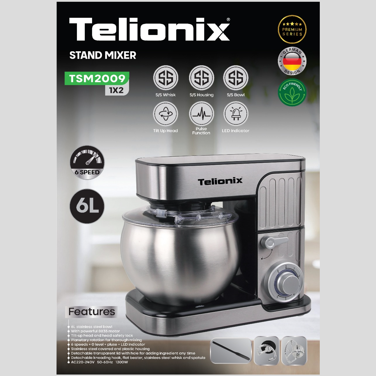 همزن کاسه دار 6 لیتری تلیونیکس مدل TSM2009