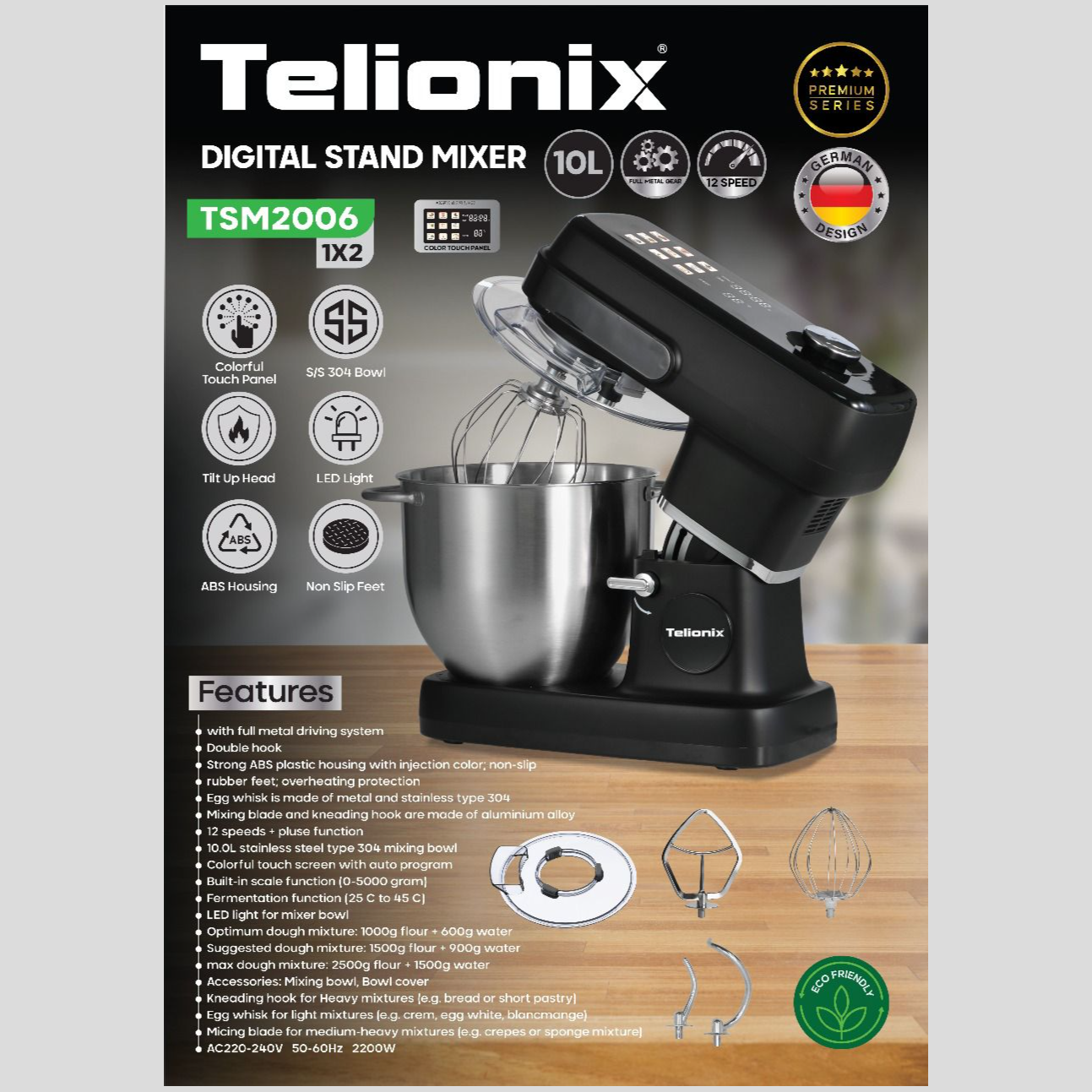 • همزن کاسه دار دیجیتال 10 لیتری تلیونیکس مدل TSM2006