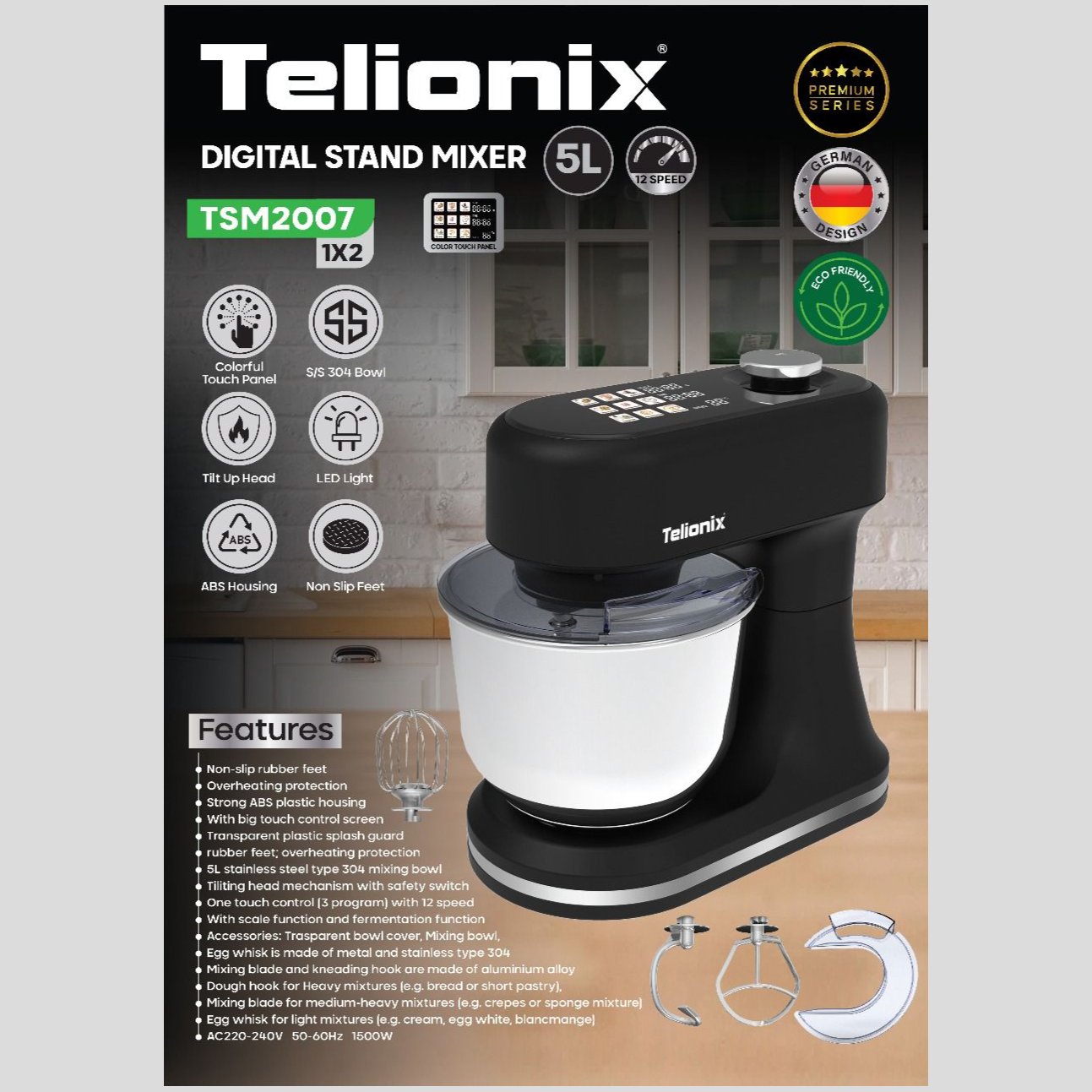 • همزن کاسه دار دیجیتال 5 لیتری تلیونیکس مدل TSM2007