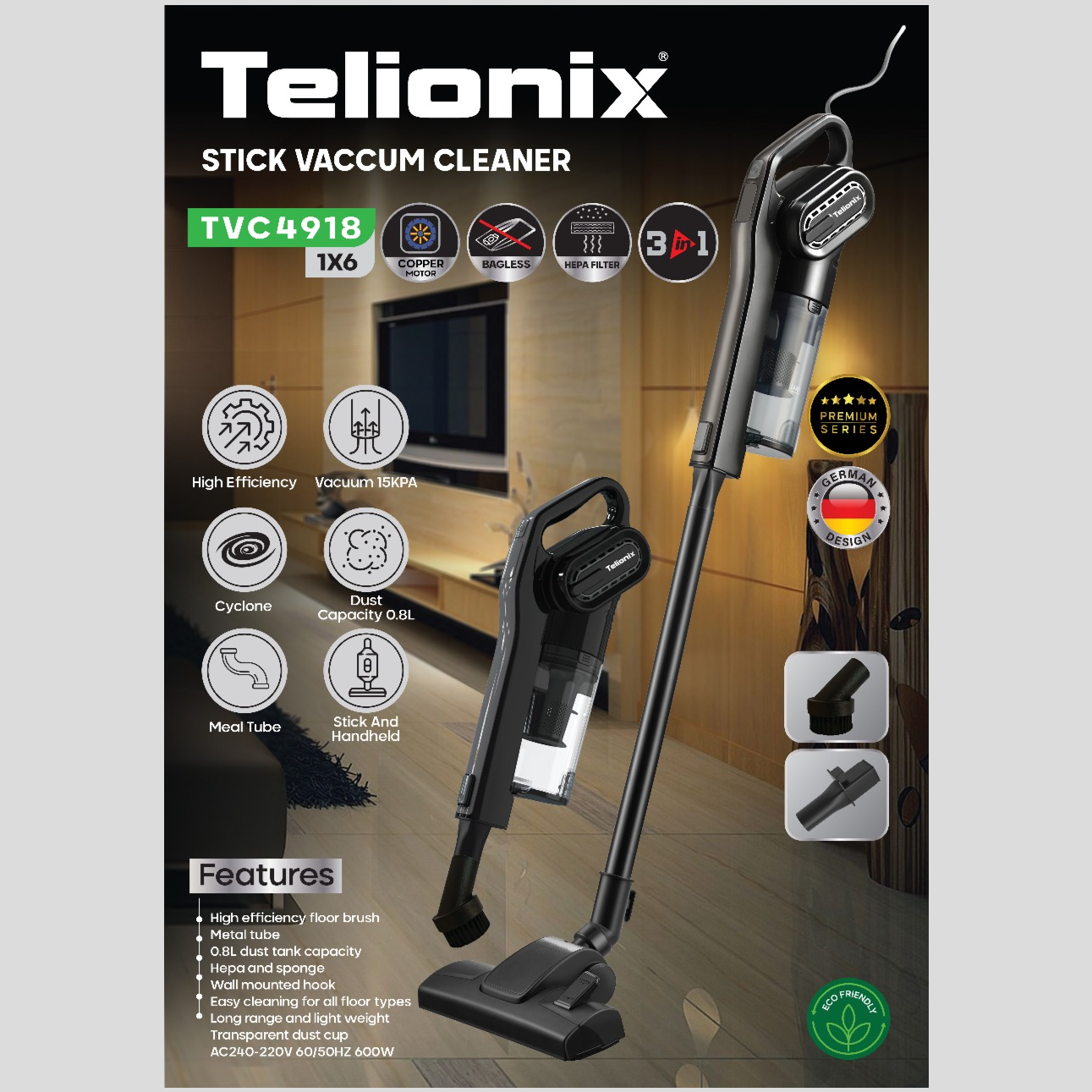 جارو عصایی تلیونیکس مدل TVC4918